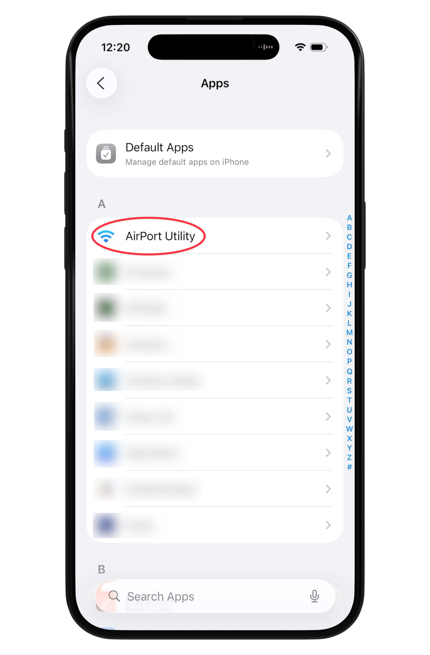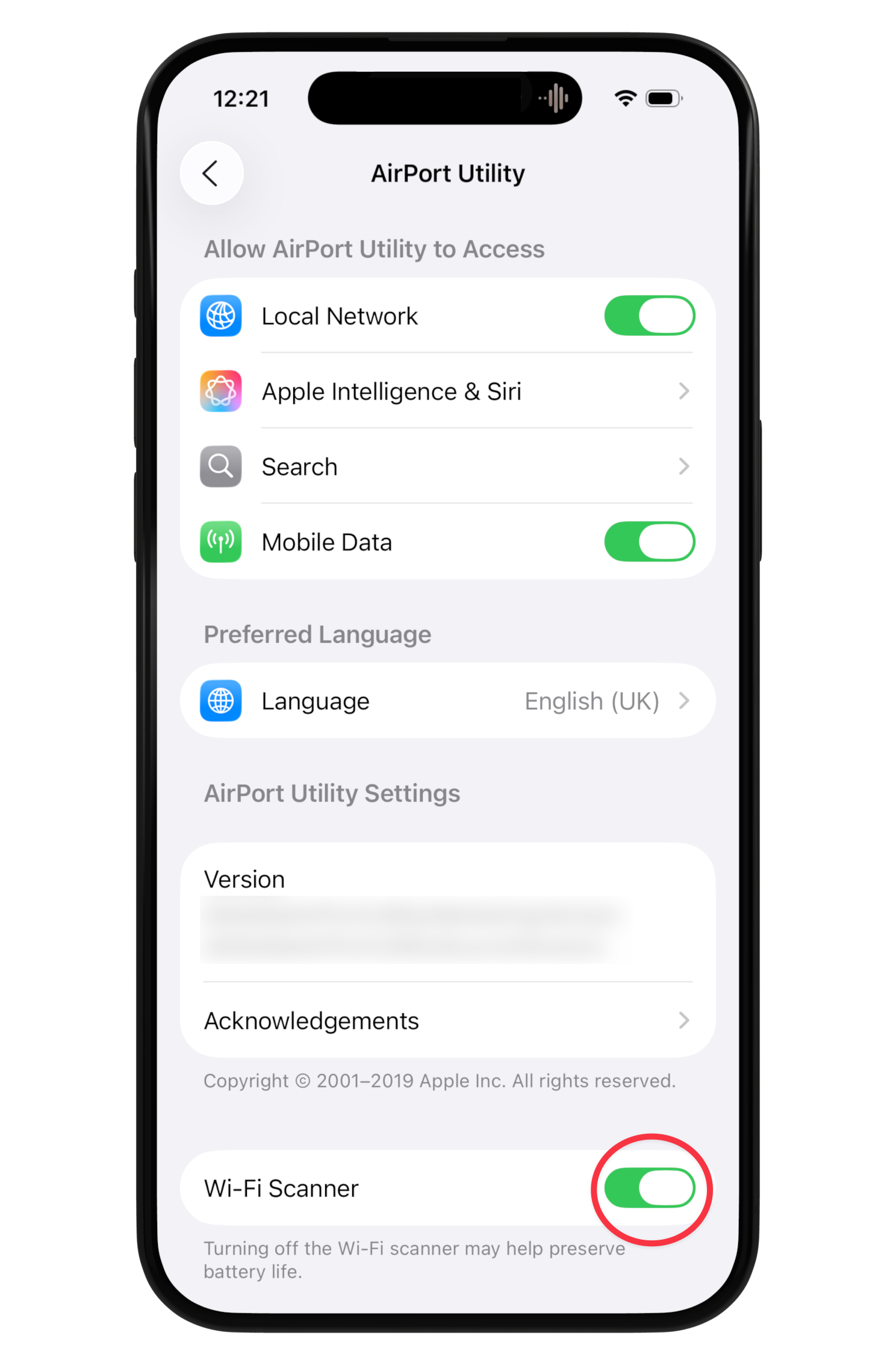 - Open the “Airport Utilities” app settings
